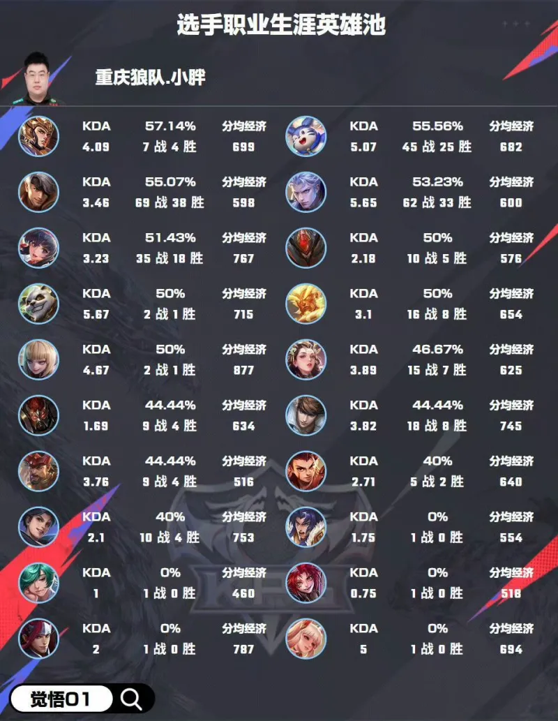 发现半岛体育-小胖职业生涯英雄胜率:赵怀真75胜率,大司命72胜率