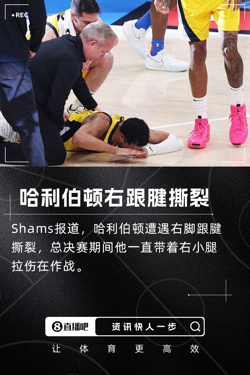 总决赛G7步行者对阵雷霆首节,哈利伯顿在一次突破中无对抗倒地,右小腿有明显抖动,痛苦捶地,随后被搀扶离场,步行者也在G7不敌雷霆无缘总冠军。赛后,哈利伯顿被诊断为右跟腱撕裂,日前已经成功接受了手术。